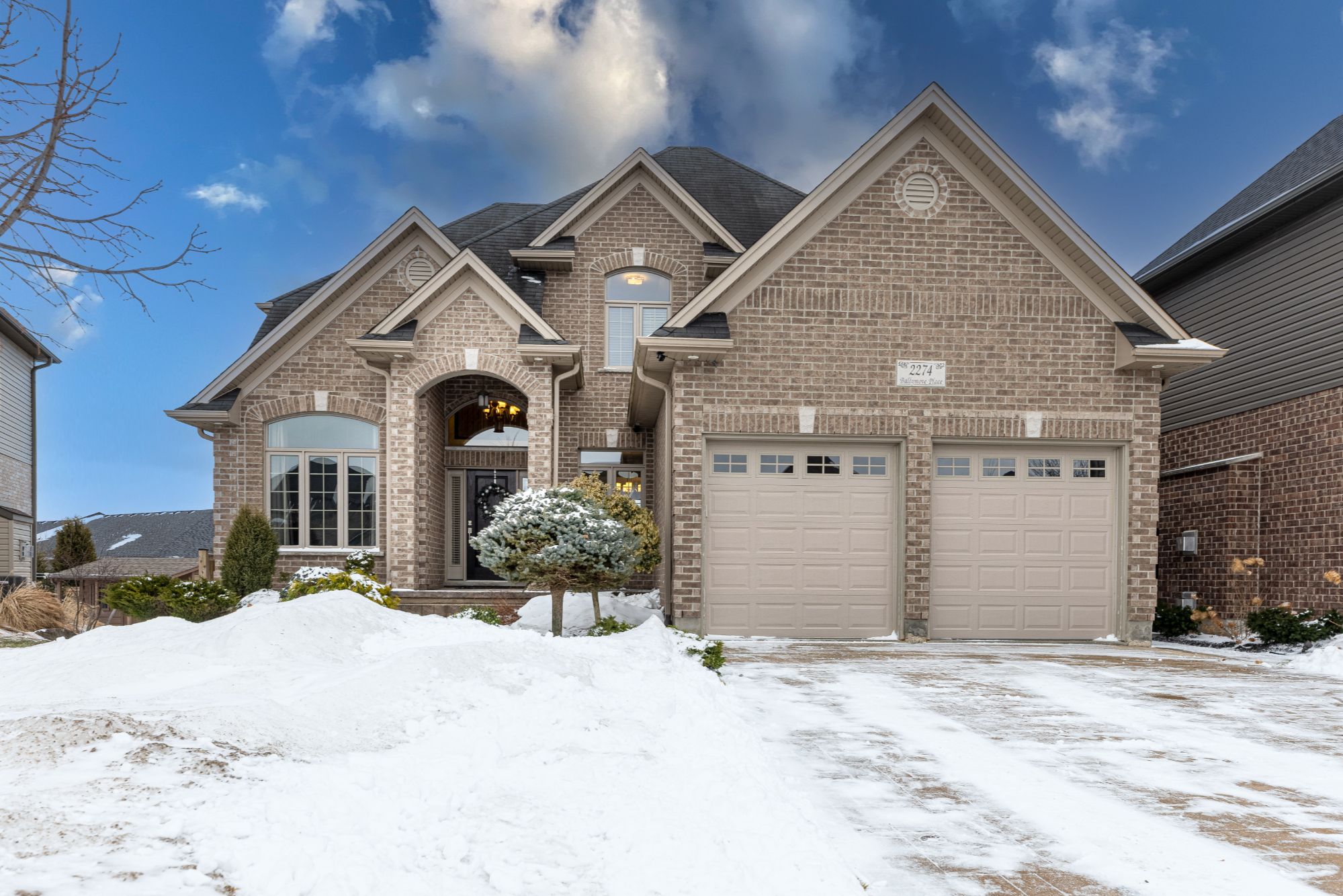 Nestled in the prestigious Ballymote Woods, one of only two exclusive courts in the neighborhood, this stunning executive home by Waverly Homes features 4+1 bedrooms, 3.5 baths, and over 3,880 sq. ft. of impeccably designed living space. A grand two-story foyer and gleaming hardwood floors sets the stage for this elegant residence, showcasing soaring 9-ft and cathedral ceilings, tray ceilings, crown molding, and extra-high baseboards throughout the main floor. The formal dining room, and open-concept living/ family room, overlooking the kitchen, is bathed in natural light, pot lights, and a cozy gas fireplace. A chef's dream, the gourmet kitchen boasts a granite centre island, built-in desk, custom cabinetry, stainless steel appliances, a stone backsplash, an oversized sink, and sliding doors leading to a deck overlooking the backyard. The laundry/mudroom offers garage access, a walk-in closet with built-in shelving, a laundry sink, and ample storage. Upstairs, the luxurious primary suite impresses with a spa-like five-piece ensuite featuring a large tub, a stand-alone shower, and a double vanity.Three additional spacious bedrooms with bright windows and ample closet space complete the upper level, along with a well-appointed five-piece main bath. The fully finished basement, with extra-high ceilings features a bright recreation room with above-grade windows, a stylish bar, and a cozy gas fireplace. A fifth bedroom and a three-piece bathroom provide additional comfort and functionality. The backyard is fully finished and enclosed by a fence installed just four years ago, complemented by a stamped concrete driveway and patio for a polished, sophisticated look. Located minutes from Masonville, Western University, and University Hospital, this home is close to scenic walking trails, a community centre, shopping, and top-rated schools. Combining luxury,space,and convenience, this home is a rare find in an exceptional neighbourhood!